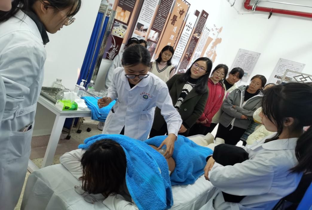 专业赋能,打造特色课堂。作为全国首批国家级一流本科专业建设点和一级学科硕士学位授权点,学院立足中医药特色优势,构建“基础护理实践+中医特色护理实践+社区实践”三维课程体系。建成2100平方米智慧护理教学实验中心,包含19间实训教室,配备虚拟仿真实验设备,创新“案例教学+情景模拟+临床见习+两段式实习”教学模式,实现“理论-虚拟-虚实结合-真人”分阶培养。开设中医护理体验馆,提供穴位按摩、耳穴压籽等特色服务,让学生在实践中提升专业技能与中医思维。推进“互联网+护理教育”,建设5门精品在线开放课程,引入人工智能赋能个性化实训,中西医结合护理学获评云南省一流学科建设项目,中西医结合精准护理获评成为云南省高校科技创新团队,2025年5月顺利进行教育部专业认证现场考察。