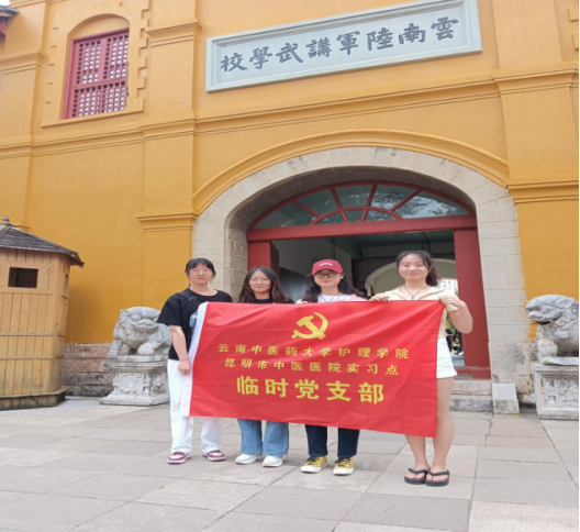 云中讯(通讯员 邱梦青)8月30日,护理学院昆明市中医医院实习点临时党支部组织全体党员到云南陆军讲武堂,开展“参观红色教育基地,坚定党员理想信念”主题党日活动。