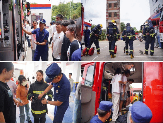 首先,消防救援大队工作人员的带领下,大家依次参观了大队的执勤车辆、指战员内务、办公生活区域,观看了消防救援技能训练。期间,工作人员为师生们详细讲解了水罐车、排风车、抢险救援车及装备器材的使用方法和功能用途,并教授师生们灭火器的使用方法和注意事项,重点强调了火场逃生、自防自救的措施及遇到火灾时的报警方法等基本消防安全常识。部分师生在大队工作人员的指导下,穿上了灭火救援的战斗服、战斗靴,登上了消防车,近距离体验消防队员的工作。