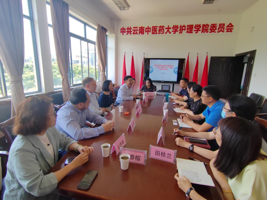 云中讯(通讯员 马艺榕)524日下午,傲拓道聚匠教育科技有限公司和德国橙色人才有限公司一行六人在我院413会议室就中德护理人才交流项目进行座谈。参加座谈会的有傲拓道聚匠教育科技有限公司董事长伍曦鹏、德国橙色人才有限公司负责人Dr.Frank、Dr Tong Ren和学校就业创业指导中心主任王丽霞、国际合作交流处处长孙永林、学院党委副书记黄冬梅及护理学院全体辅导员。