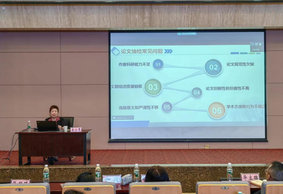 姜小鹰教授以《研究生论文常见问题及分析》为题,从论文抽检常见问题、论文主要问题分析、问题研判及对策三个方面层层深入,列举典型案例,指出研究生论文中的常见问题并分析错误缘由。同时,从护理院校、研究生导师、研究生等不同层面提出具体改进策略。姜教授的讲授内容全面、针对性强,详实解答了护理师生在论文写作中的困惑和问题,为护理师生规避论文写作错误及提高论文质量提供了可操作的指导意见,全体师生深受启发。
