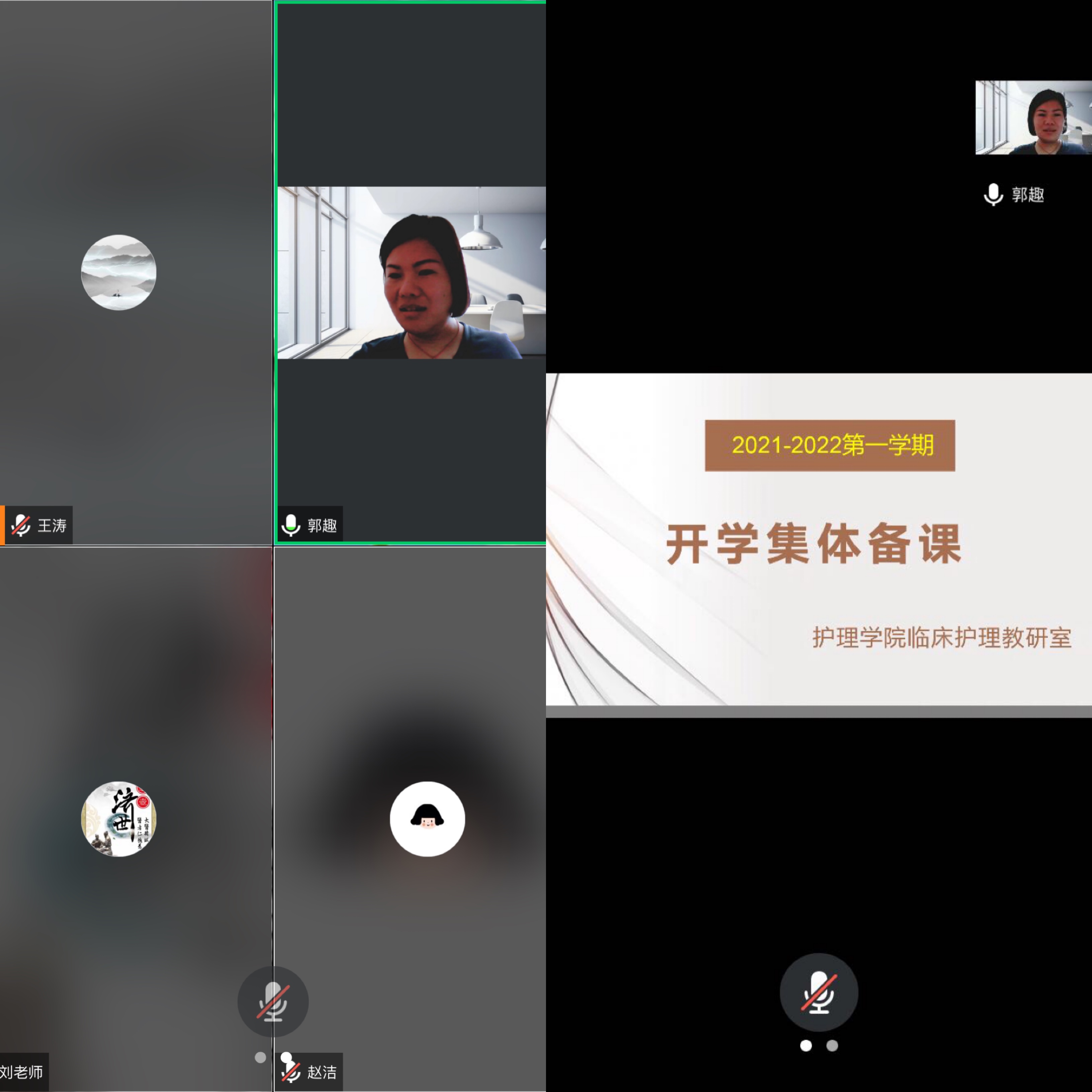 云中讯(通讯员王涛郭趣)新学期新气象,临床护理教研室的老师们于8月31日下午以饱满的热情相聚云端进行集体备课,会议由临床教研室主任郭趣老师主持,全体教研室老师参会。