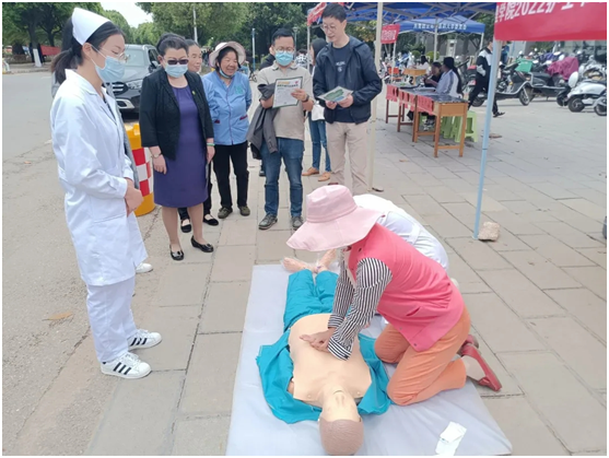 活动一:5月12日上午,护理学院教师党支部的老师和学生党支部的同学来到官渡社区开展义诊活动。面对人头攒动的社区居民,师生们热情接待,仔细了解居民们的健康需求,详细询问病情状况,给出了中医护理的解决方案,得到了当地居民的积极肯定,夯实了中医护理的社会群众基础。义诊结束以后,师生深入社区居民生活点开展爱国卫生运动,提升居民人居环境。展现了我院师生的良好精神风貌。