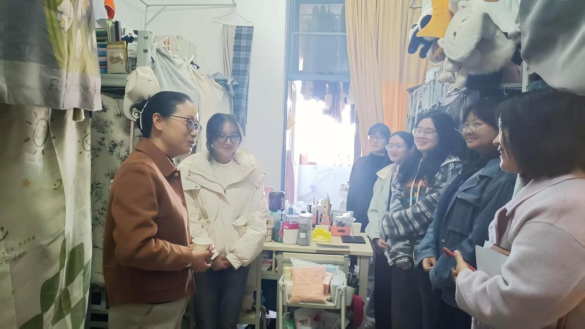 云中讯(通讯员 罗如飞)12月5日下午,校党委副书记祁苑红走进护理学院熟地苑学生宿舍80518,与联系宿舍的学生亲切交谈。她关切地询问同学们的学习进度、生活状况,耐心倾听大家在学习生活中遇到的难题,从课程学习压力到宿舍生活细节,让同学们真切感受到学校领导的关怀与温暖,现场氛围温馨融洽。