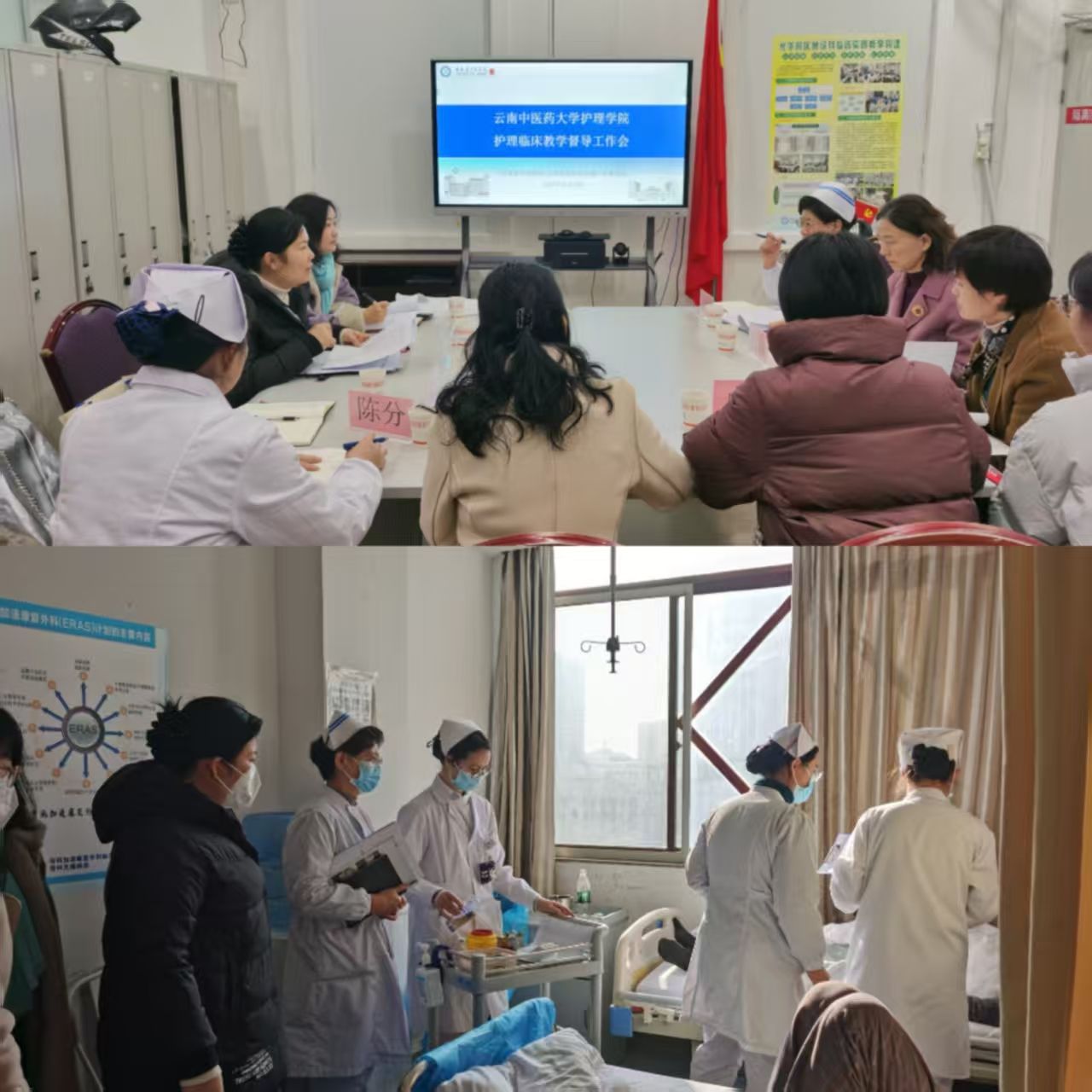 (云中讯 王涛,徐云)为持续加强临床教学管理工作,切实保障护理人才培养质量,2025年12月24日至26日,护理学院副院长郭趣带领教学管理办公室老师,先后前往云南中医药大学第一、第二、第三附属医院,开展临床教学督导与调研工作。各医院分管副院长、护理部主任、临床教学督导及教学骨干参加相关会议,学院教师还深入临床一线,走访慰问实习生、调研带教实施情况。