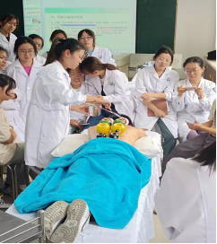 护理学院邀请院内外20余名中医护理专家担任培训专家,讲授腕踝针、平衡火罐、梅花针、雷火灸、隔姜灸、中药熏蒸等临床常用的27项中医适宜护理技术相关知识,包括运用机制、适用范围及注意事项等,并进行操作示教。学生们积极互动、认真练习,热烈讨论实际操作遇到的问题,教师逐一进行解答,耐心细致指导学生练习操作,最后通过随堂考核巩固学习效果。