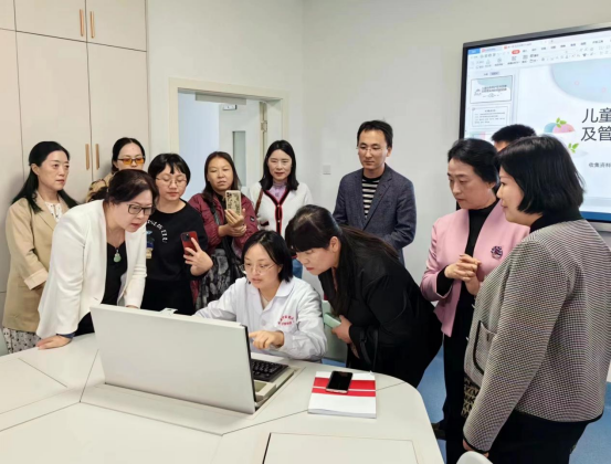 随后,广东医科大学护理学院领导一行实地考察了护理学院实验教学中心,毕立雄对实验室的智慧化建设情况做了详细介绍和讲解,郭趣随后带领来宾参观了每间实训室,对相应实验室的智能助教系统、同伴互助系统、智慧床头卡、护士站智能交互系统等做了详细介绍,来宾亲自体验了虚拟仿真及VR系统的实际操作项目并表示为后期实训中心建设拓宽了视野,厘清了思路。