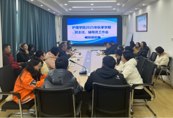 中讯(通讯员 王瑞欣)2025年11月19日,护理学院在精诚楼413召开全体辅导员、班主任工作会。学院党委书记毕立雄出席会议并讲话,学院党委副书记黄冬梅主持会议,全体辅导员、班主任参加会议。