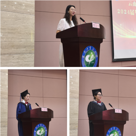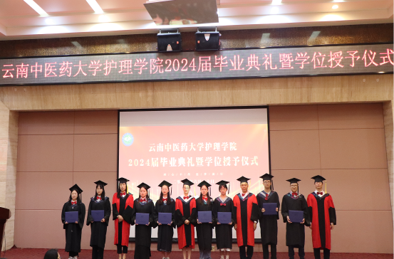 随后,毕立雄宣读了《关于表彰护理学院2024届优秀毕业生的决定》,并对优秀毕业生代表进行了表彰和奖励。校院领导为优秀毕业生代表颁发了证书。最后,祁苑红及护理学院各位导师代表为毕业生授予学位并拨穗。