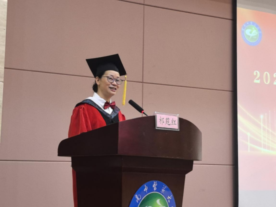 祁苑红向即将踏上人生新征程的毕业生们表示热烈的祝贺,她肯定了毕业生们在校的努力和拼搏,表达了学校对毕业生的期望与祝福,并叮嘱毕业生要“博极医源、精勤不倦”,“心怀大爱、立诚笃行”,“惟实励新,臻于至善”,勇往直前、乘风破浪,用自己的智慧和汗水书写出更加辉煌的人生篇章。