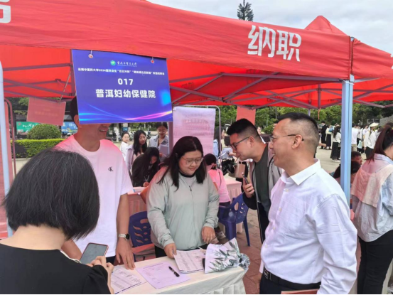 座谈会后,毕立雄、黄冬梅、毕业班辅导员、班主任一行来到招聘会现场,积极与用人单位交流洽谈,了解护理岗位用人需求,向用人单位介绍护理学院人才培养情况,积极推介毕业生。同时,对参加招聘会的学生进行指导和鼓励,引导毕业生认清就业形势,树立正确的就业观,争取早日找到满意工作。
