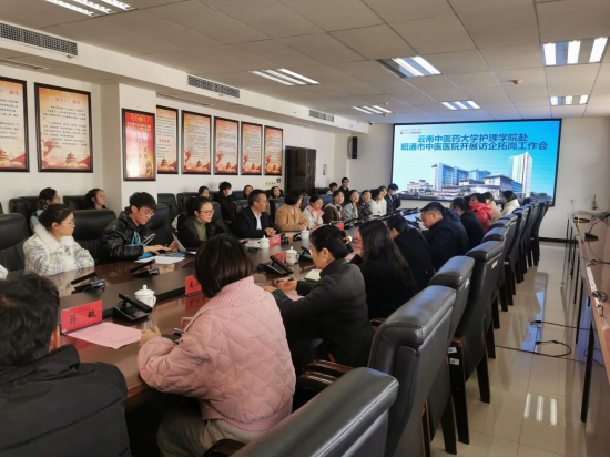 随后,毕立雄一行来到昭通市中医医院,看望了在该院实习的2024届毕业生,与医院相关领导和科室老师进行座谈,一方面了解实习生的实习情况,另一方面了解医院的招聘用人的情况。双方就业人才培养、毕业生就业等方面进行交流。